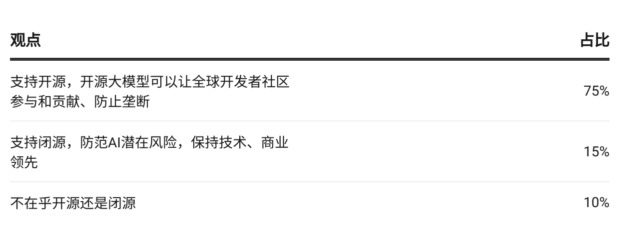 其一,大模型技术、开源、生成式AI、算力这些热词都是开发者最关注的技术突破方向。而更深远的问题,比如与隐私保护、日常生活息息相关的价值对齐、安全合规等问题,受关注度弱于其他技术突破方向。这可能是因为很多人还未对「人工智能的潜在伦理风险」产生实感,这些情节暂时还存在于电影之中。