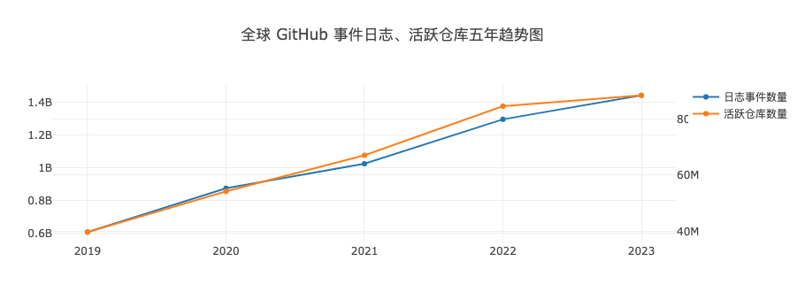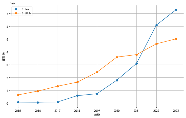 GitHub与Gitee活跃仓库事件数(图源:开源社)