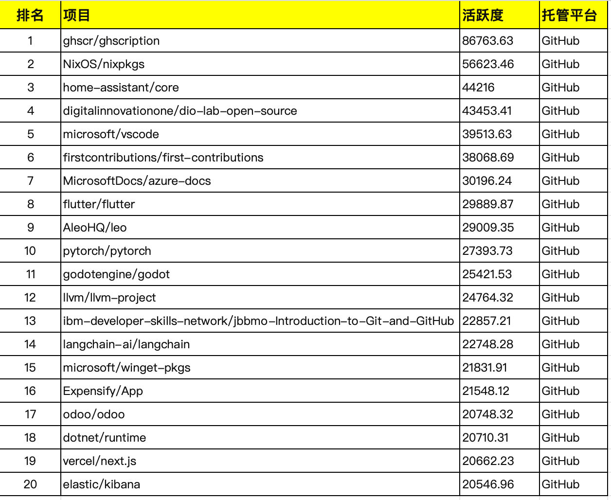 然而,需要强调的是,单纯依靠前3万个活跃项目的数据无法完全揭示全球GitHub平台的真实情况,因为长尾效应在全球范围内仍然非常明显。特别是GitHub平台作为全球领先的开源社区的广泛和多样性。在未来,随着技术的不断演进和开源文化的推动,可以期待中国开源社区在全球范围内继续蓬勃发展。