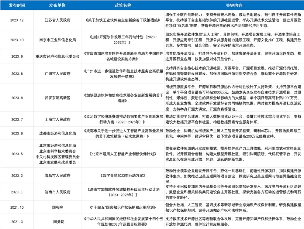 过去一年各地方政府的开源政策(图源:整理自网络)