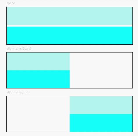 Text('alignItems(End)').fontSize(9).fontColor(0xCCCCCC).width('90%')