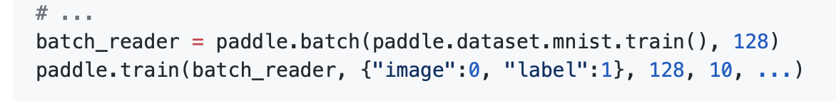 In the doc of prepare_data, it use the method: paddle.train(...). But in paddle version 1.3.0, there's no attribute 'train' in paddle module. Is there some pre setting for paddle?