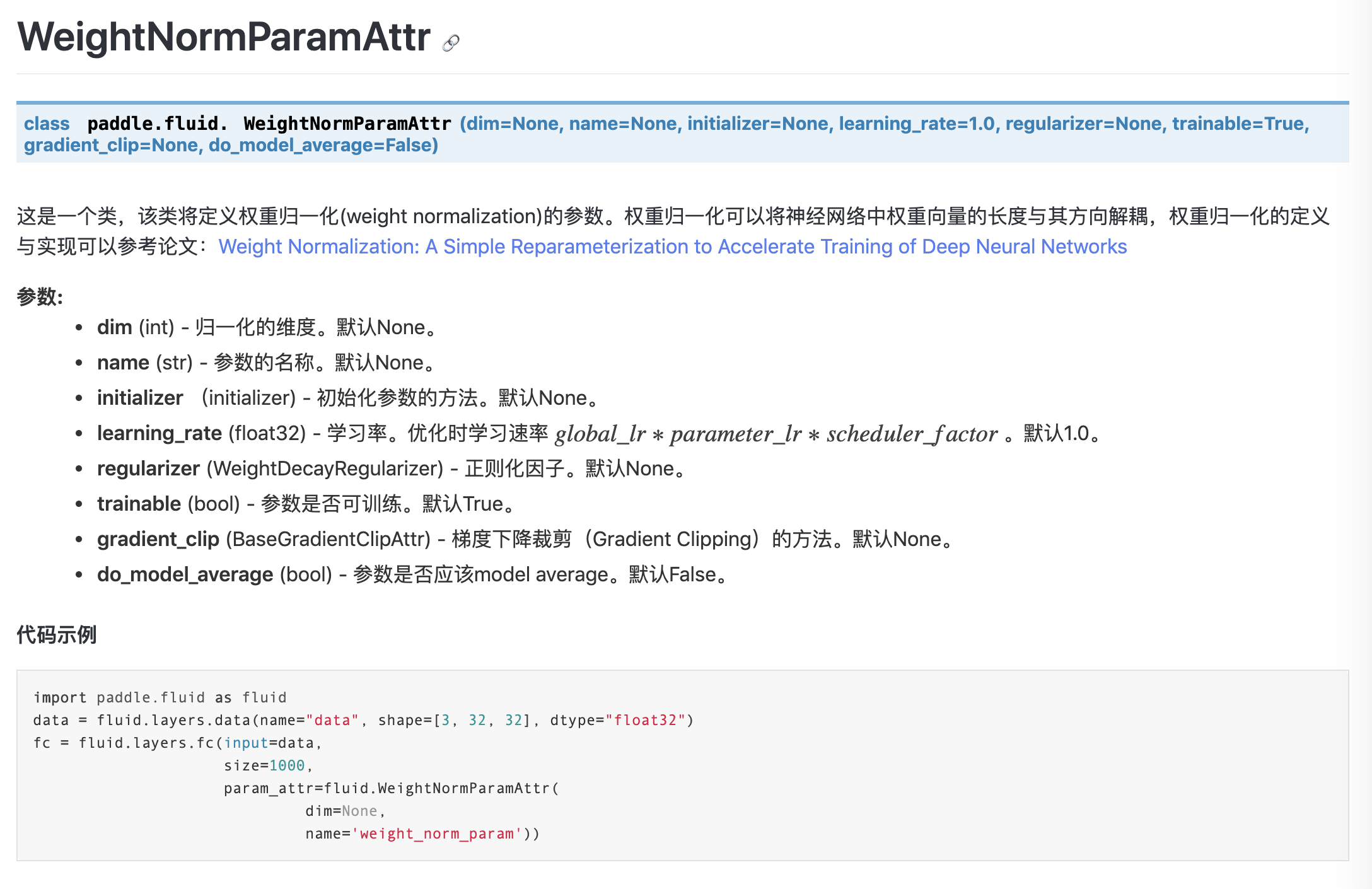 (2)WeightNormParamAttr: