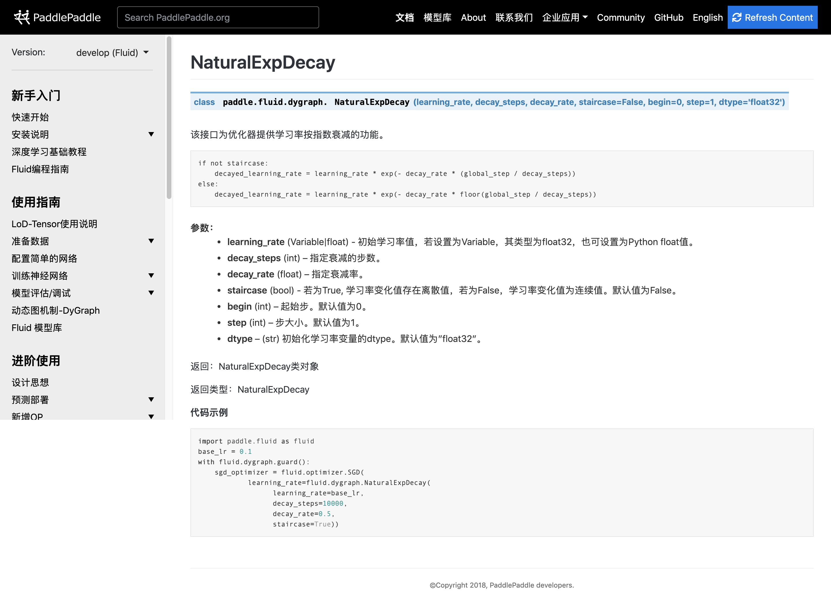 add description to learning rate natural exponet decay !1245