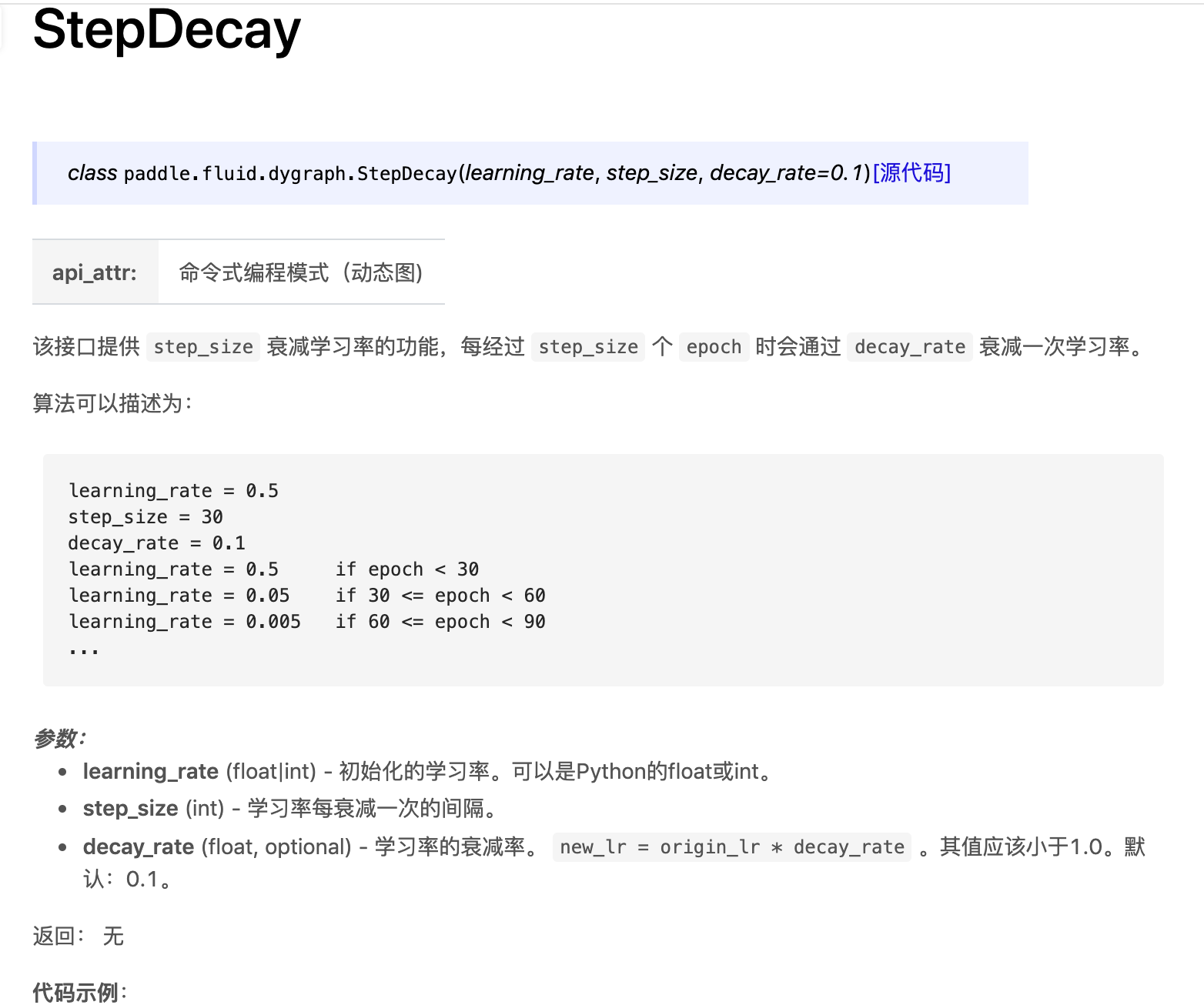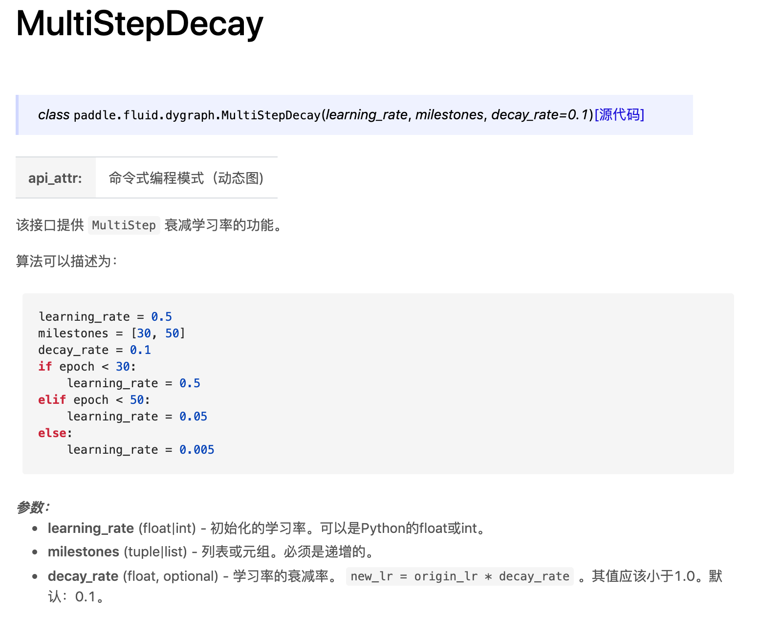 add doc of new API:StepDecay, API:MultiStepDecay.
