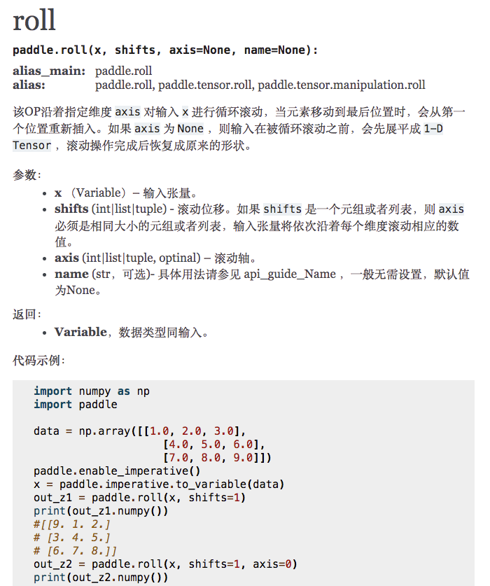 1, modify roll, trace api cn doc according to paddle 2.0 standard