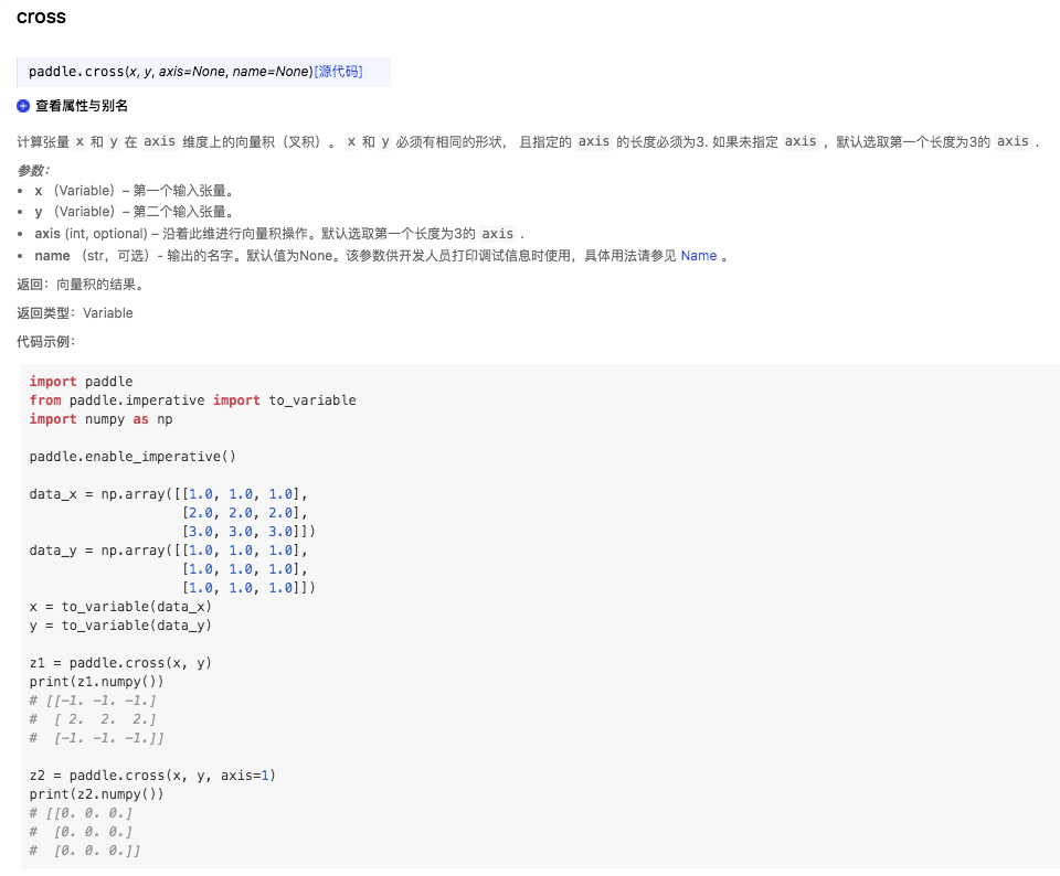 fix cross op doc for API2.0, test=develop, test=document_fix !2287