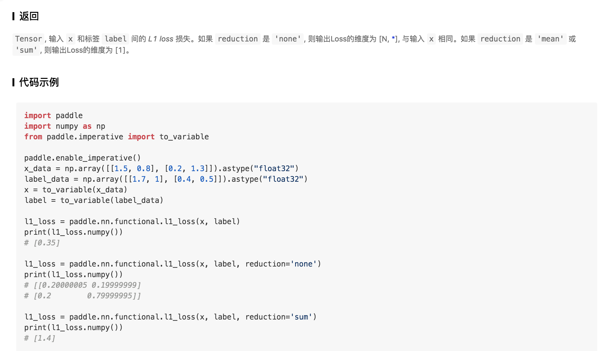 Update the docs of L1Loss, add nn.functional directory, test=develop !2343