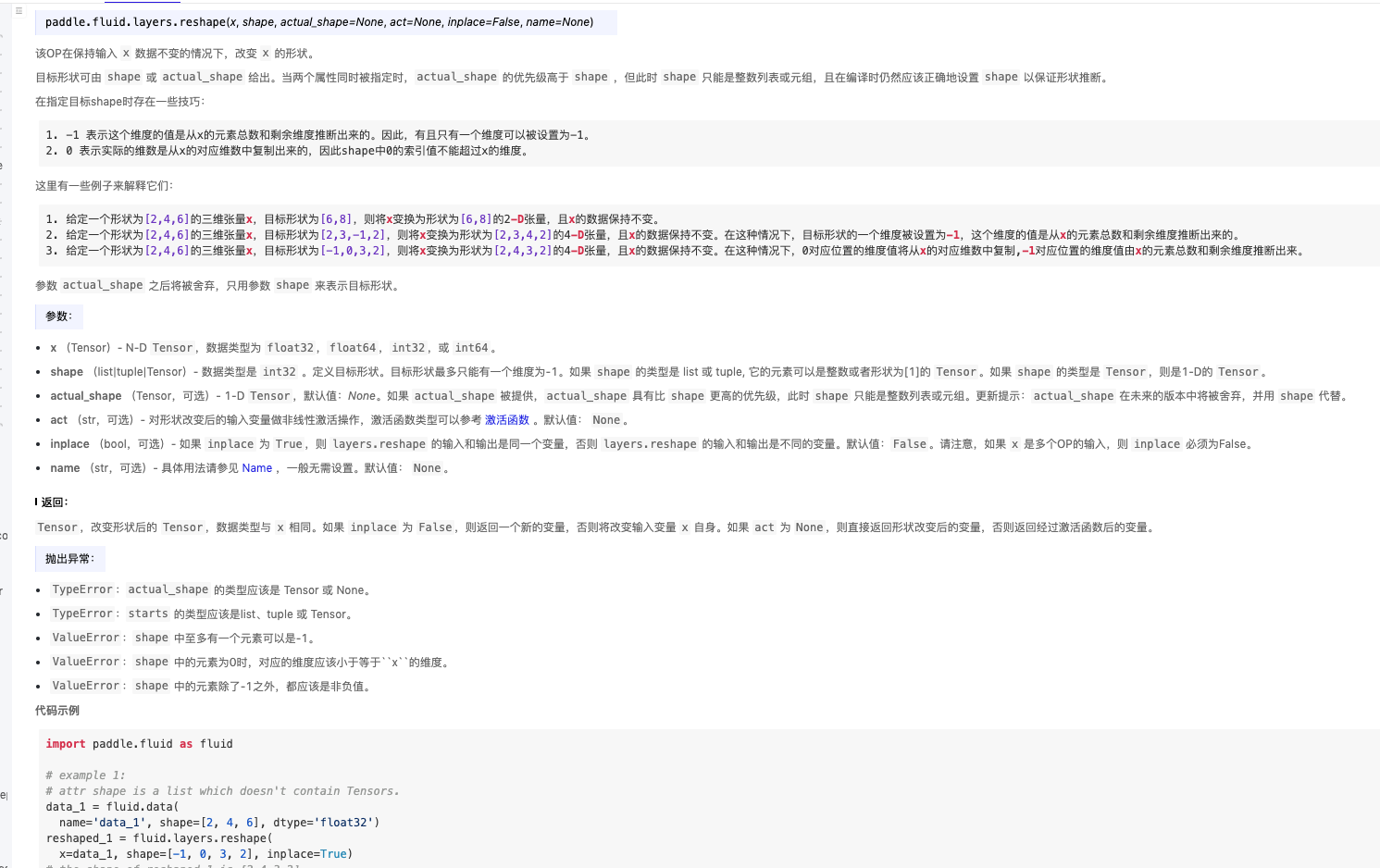 的中文文档layers.reshape