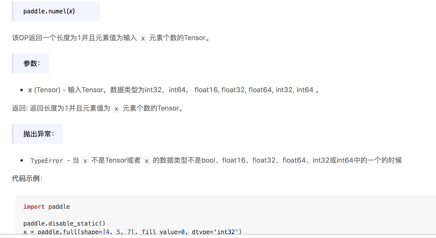 add doc for numel Op !2455