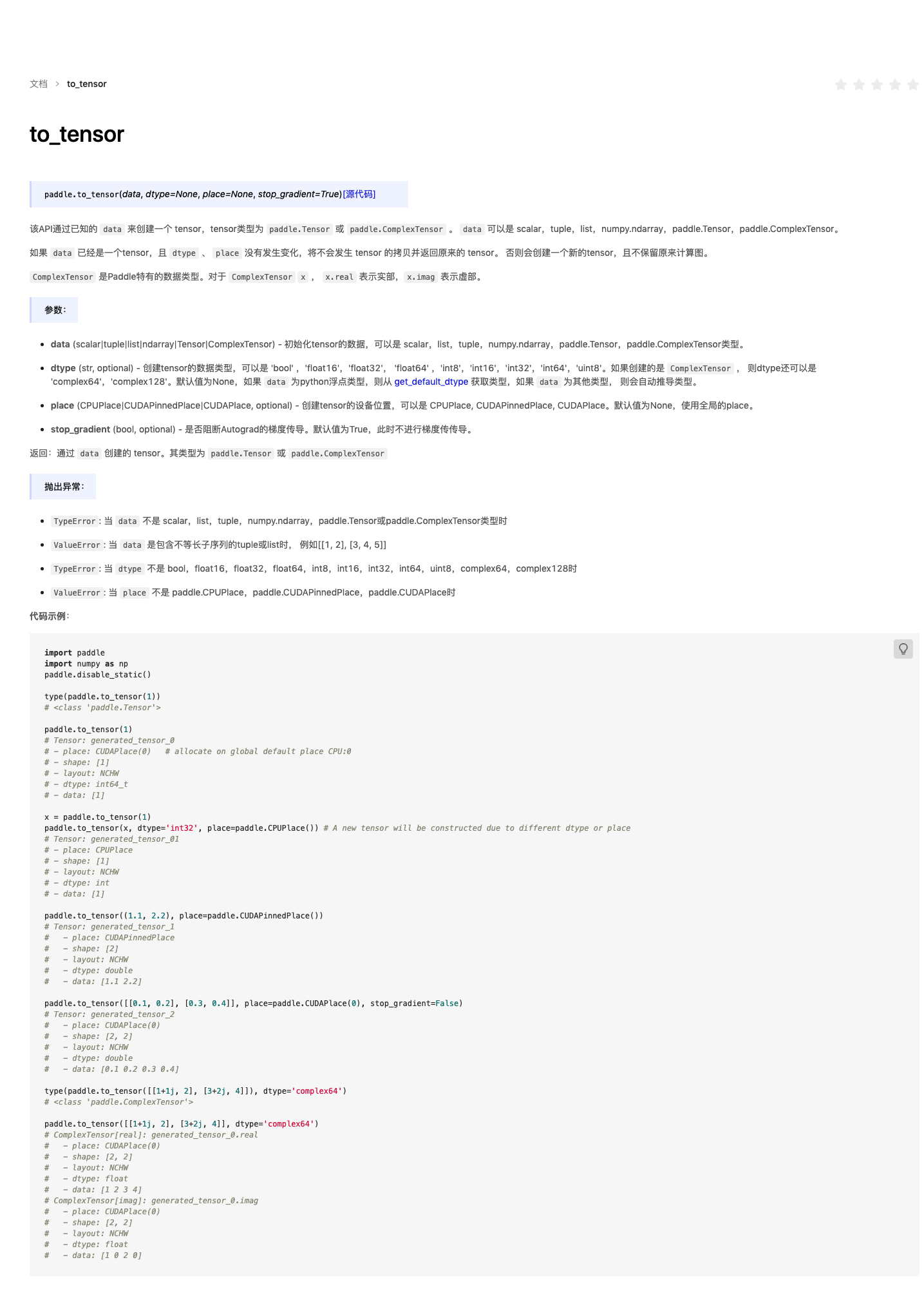 2. API文档性质:针对开发者,Paddle2.0里对Tensor类成员API进行了极大扩充,Tensor目前支持了151种操作,该文档提供查阅Tensor目前支持的151种API。