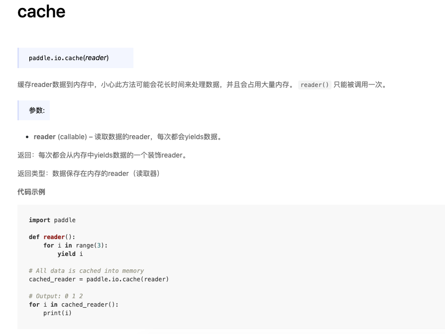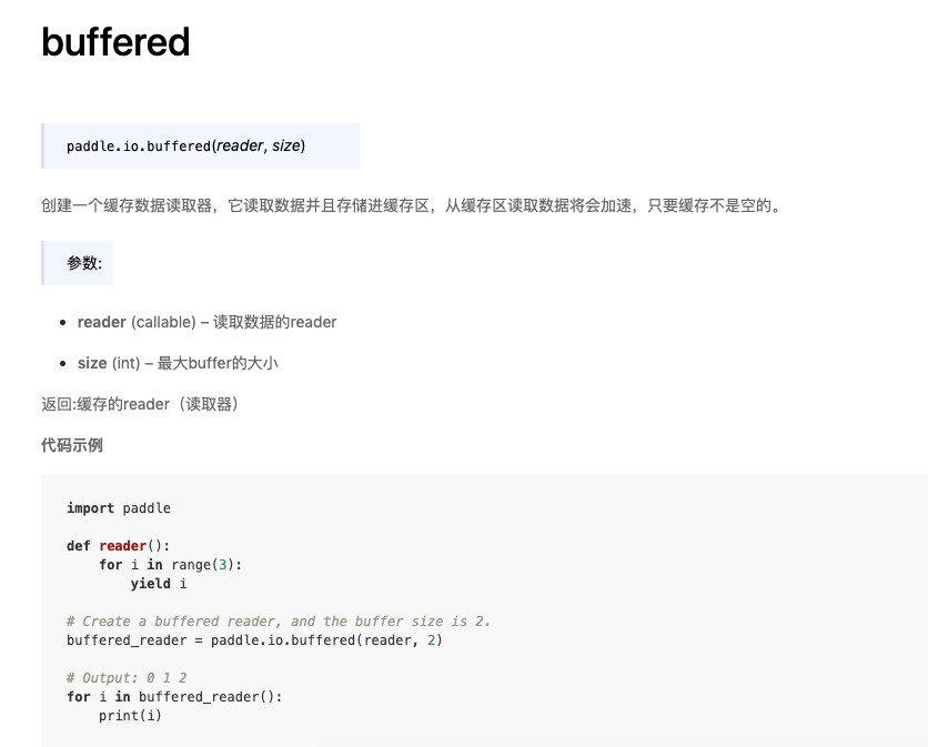 [doc] Add example for buffered and cache, test=develop, test=document_fix !2677