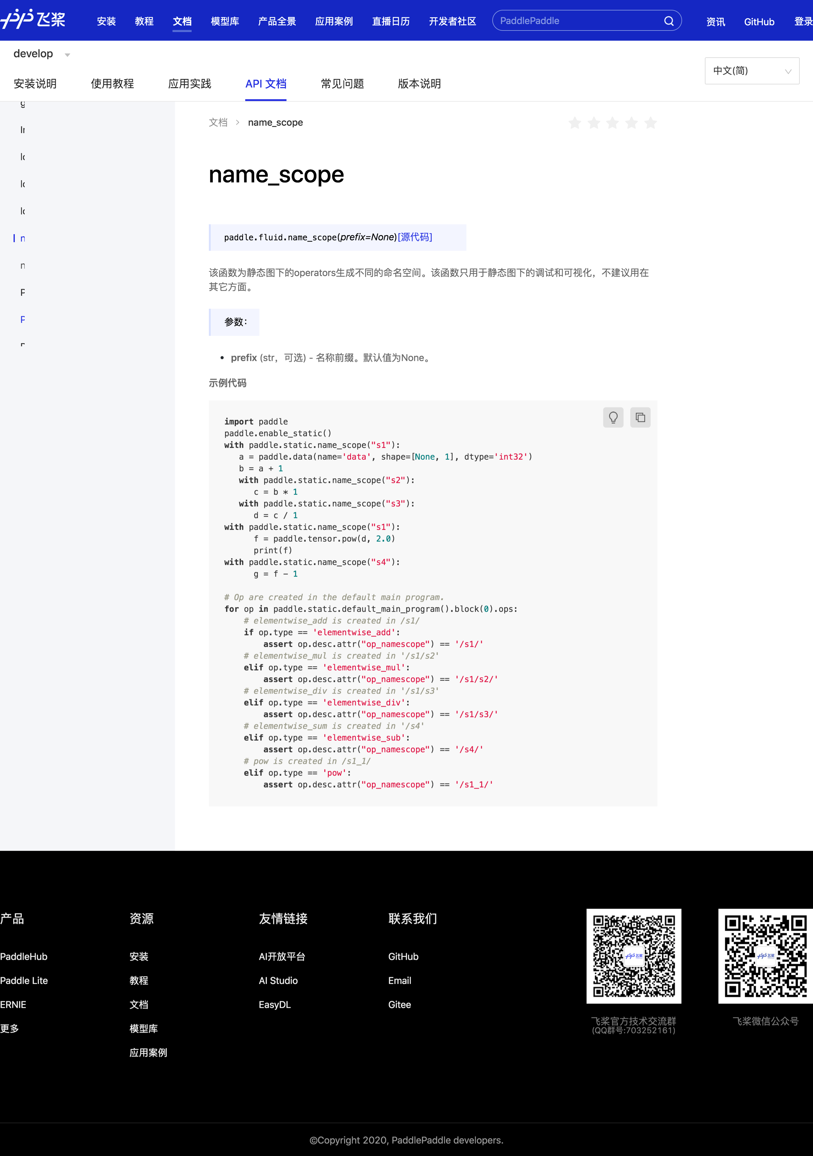 (1)1.8API list:paddle.fluid.name_scope (2)2.0_main_alias:paddle.static.name_scope (3) 组长建议:新API名称:暂无,文档和示例待更新
