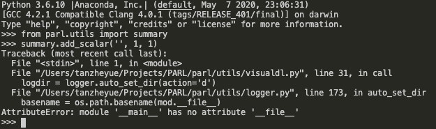 When directly calling methods of summary in Python interpreter or Jupyter notebook, following error raises:
