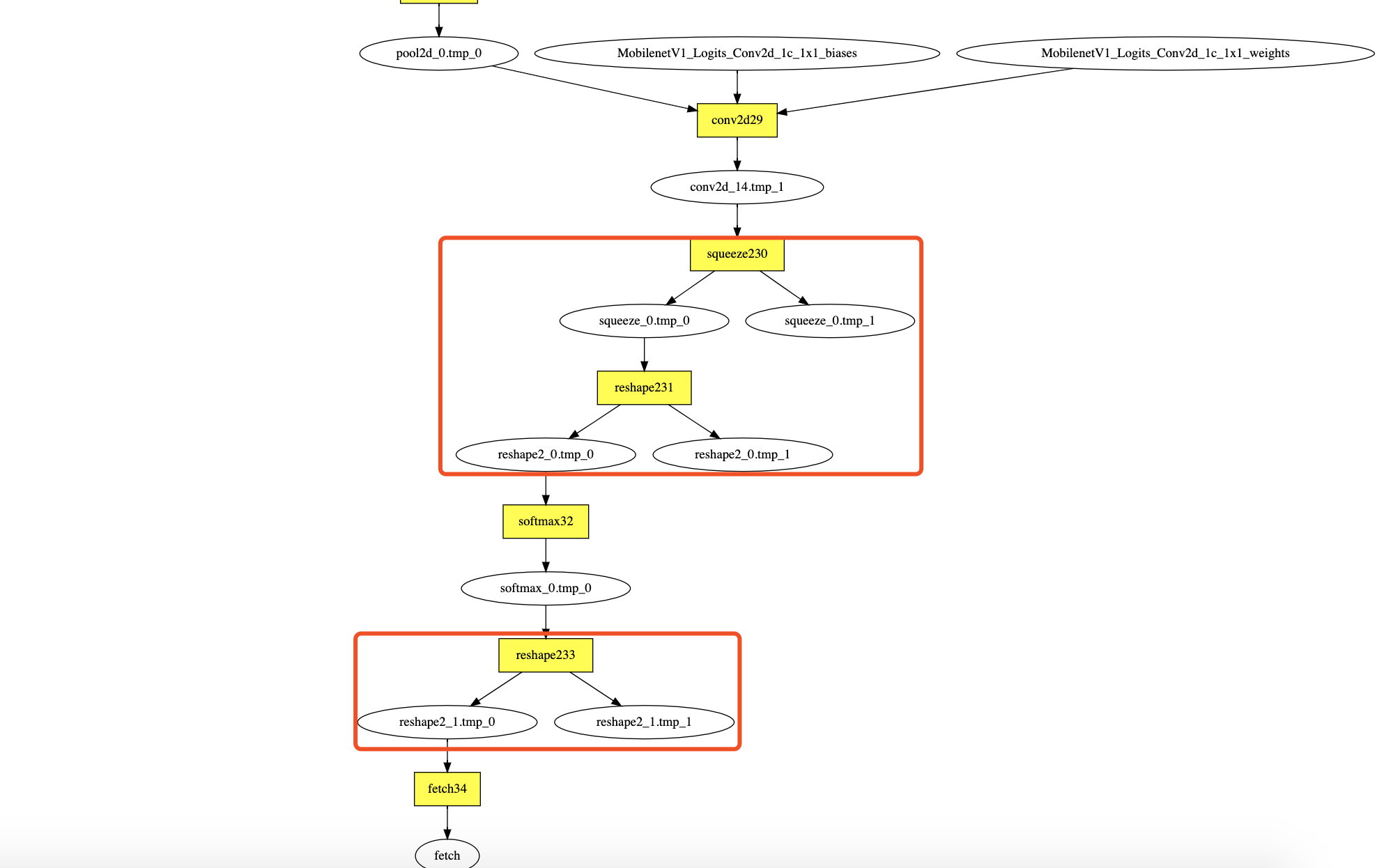 - 内容:移除tf_mobilenetv1/v2的reshape2->squeeze2、resshape2的结构,目前仅限于tf_mobilenetv1/v2。tf模型的mobilenetv1/v2在这两个结构中仅仅做1001x1x1->1001的维度变化没有实际作用,对于gpu来说这种操作十分费时;