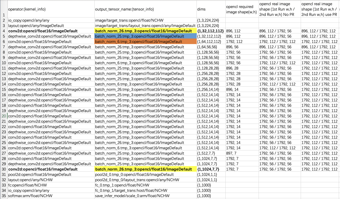 的 output (cl image shape <896,112>) 复用了模型中最后一个layout 为ImageDefault