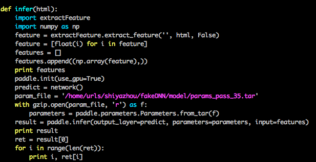 问题:使用infer接口输出的softmax层结果和不等于1. 以下是我的网络配置等: 我的infer代码: infer的输出结果: