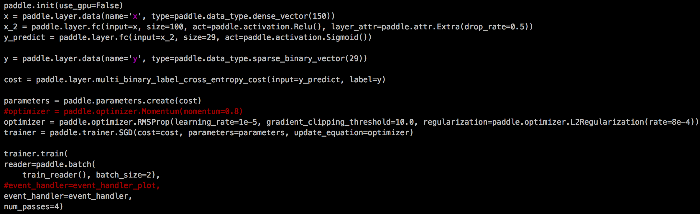 2.infer之后的结果 可以看到所有的测试样本都是第一个label的权重最大,基本等于1,模型训练看loss函数应该拟合,测试样本的区分性比较大,不应该是这样的结果,帮忙解决一下