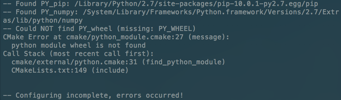 Mac OS系统下编译PaddlePaddle需要事先安装好wheel