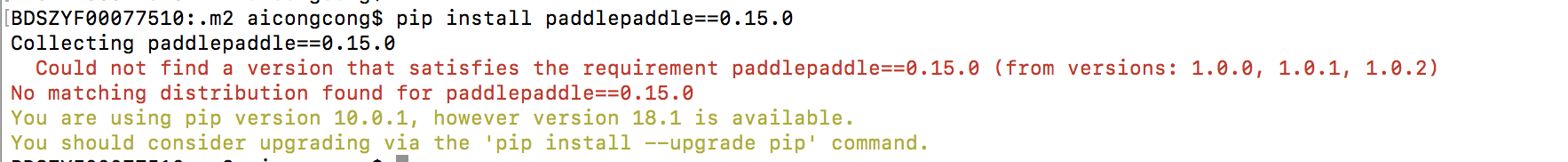 macOs 怎么安装paddlepaddle 0.15.0?