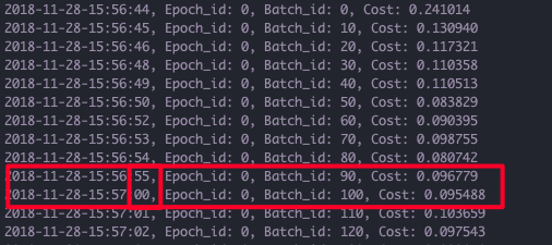 buf_size用于控制加载数据的缓存大小,但是我发现每次在buffer切换时候都会花费一个较长时间,例如buf_size=BATCH_SIZE*100时,当batch从90->100时候进行一轮切换,切换耗时较大: