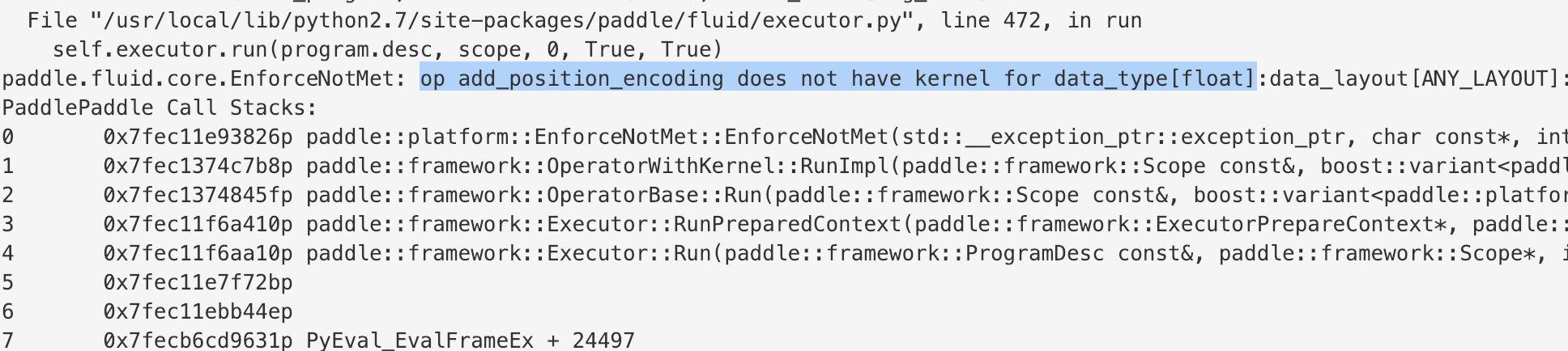 使用fluid.layers.add_position_encoding的时候,在CPU上可以正常训练,但是用GPU会报错