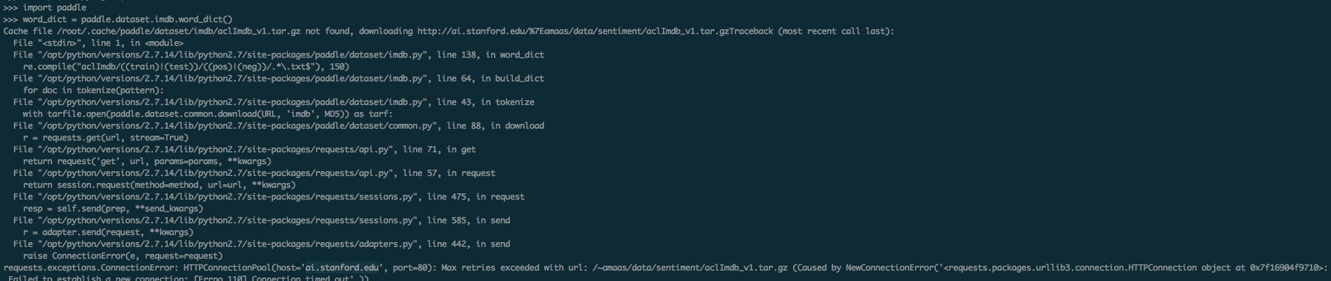 paddle.dataset.imdb.word_dict() 报错,连接超时