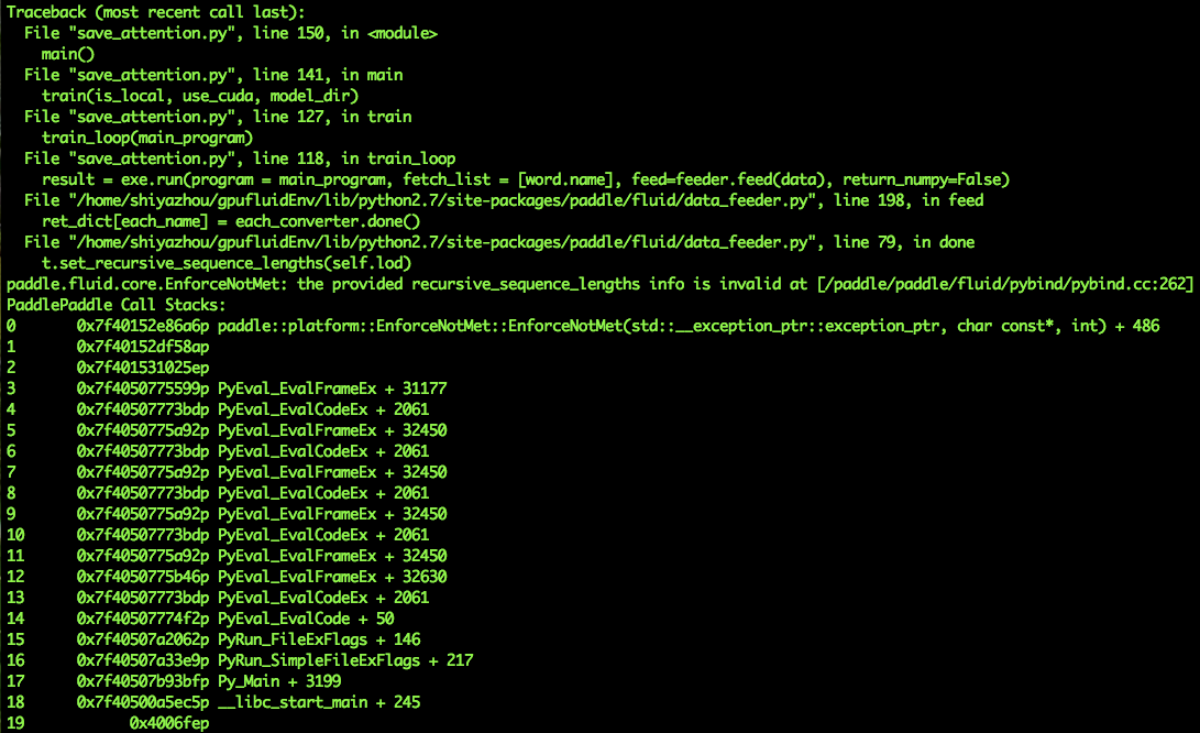 以上是tranformer的实现,我在用到自己模型中时,参考上边的配置,结果报错了。 我的数据是将一个句子转变成的序列vector,比如 [[1], [2], [3], [5]] 另外有个疑惑,既然已经做了padding,可以当定长处理,为什么tranformer里用的lod_level = 2.