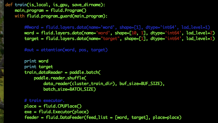其中src_word数据层定义是"src_word": [(batch_size, seq_len, 1), "int64", 2], 对应的是data的shape, dtype, lod_level。