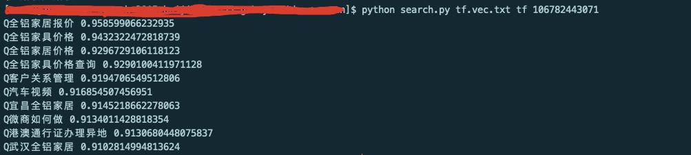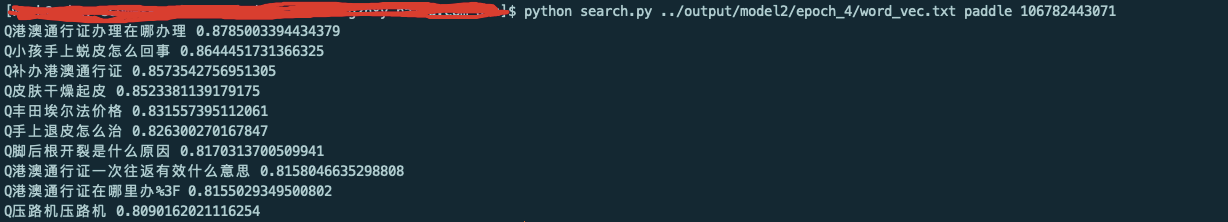 这是我应用的一个效果,这个userid是做铝制品家具的,想看这个客户的top10相关的query,paddle的效果: