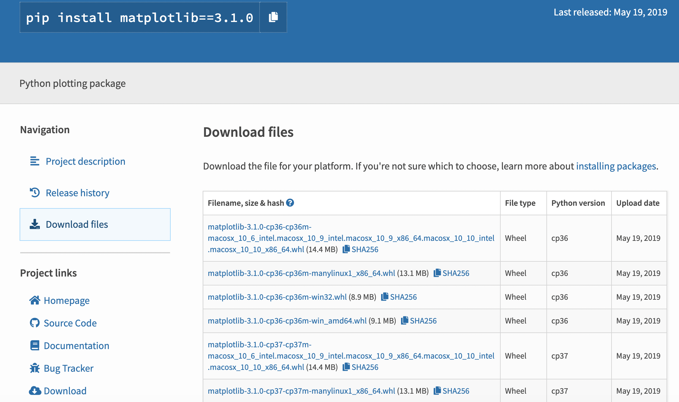 matplot最新版本 3.1.0不支持3.5了
