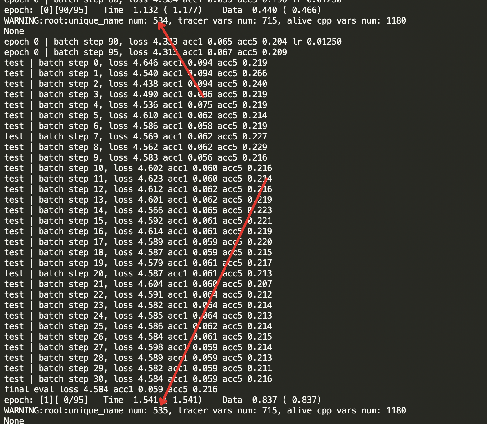 在第一轮至第二轮训练时候,unique_name会增加1,之后不会增加了。这个情况可能引发内存泄露,需要排查一下原因。