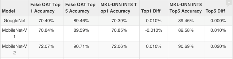 Reported from Baidu that when they reproduce the MKL-DNN Release 1.5 QAT results on their server CLX 6271 with latest commit, they found that mobilenet-v2 got 0.07% accuracy drop.
