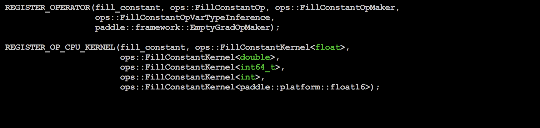 目前我们可以看到在OP注册的时候我们的 fill_constant是支持如下类型的
