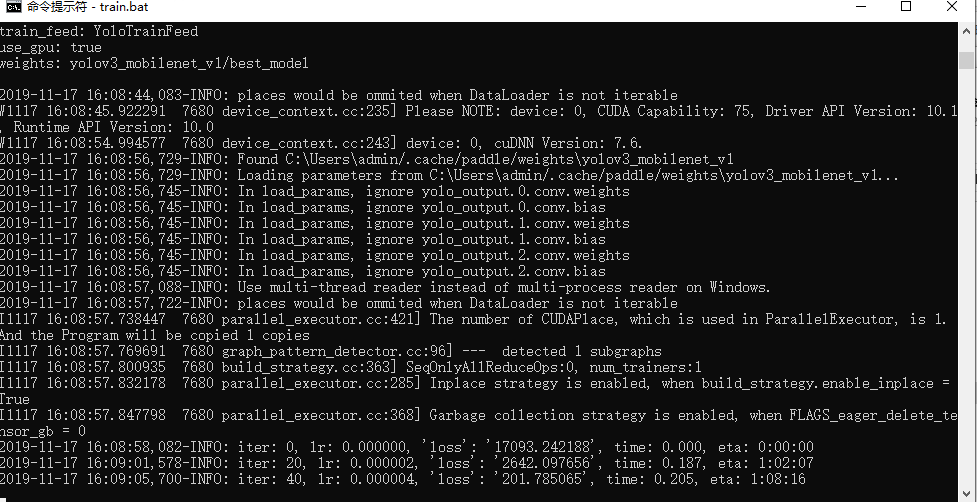版本、环境信息: 1)PaddlePaddle版本:1.6.1 2)GPU:NVIDIA Geforce GTX 1660 Ti, CUDA 10.0.130, cuDNN 7.6 4)系统环境:Windows 10, Python 3.7.5 64bit
