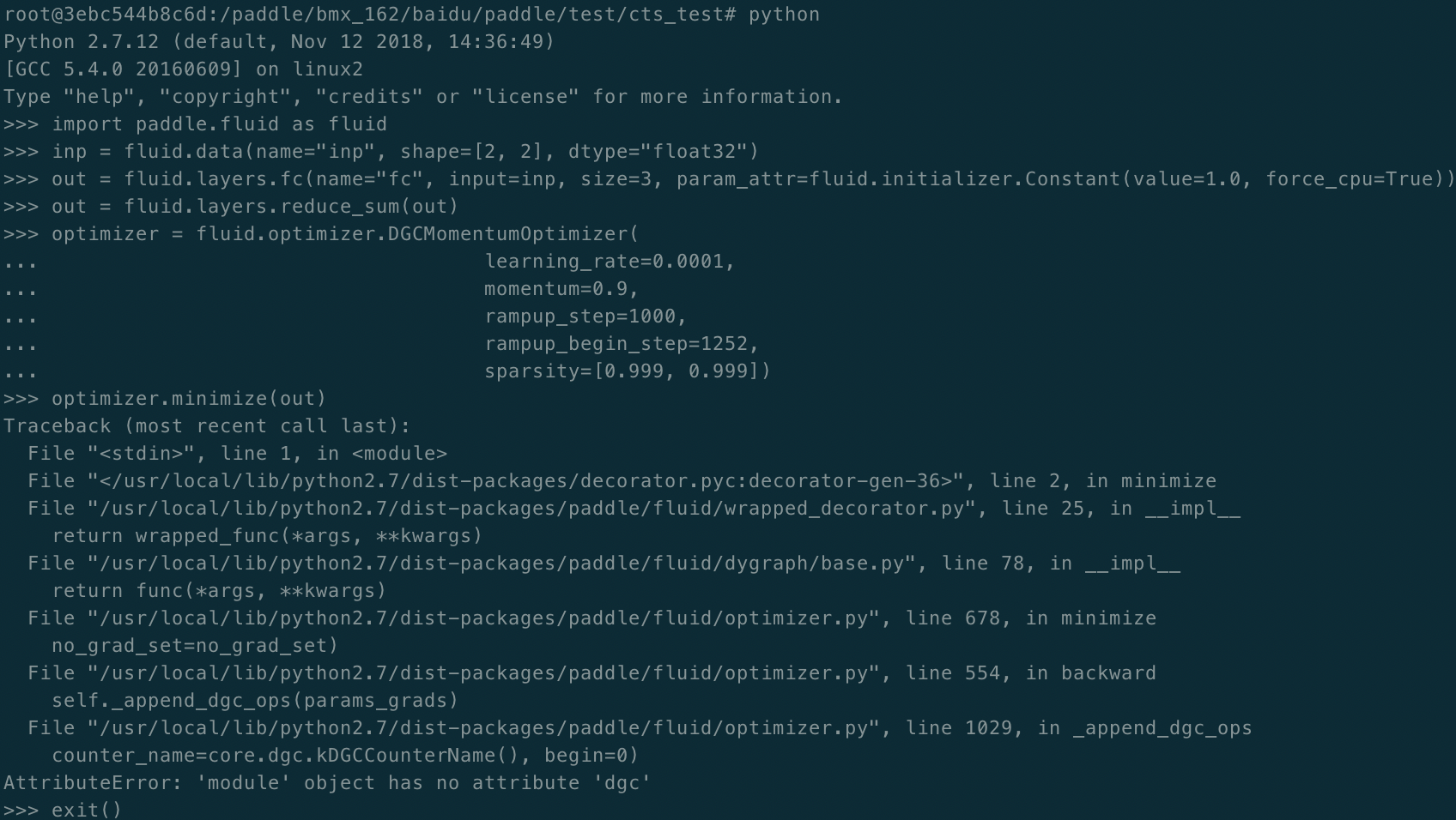 DGCMomentumOptimizer在cpu上报错AttributeError: module 'paddle.fluid.core_avx' has no attribute 'dgc',gpu没有报错信息