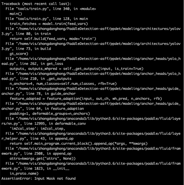 如果使用mask 代码: offset_mask = fluid.layers.conv2d(input=wh_pred, num_filters=39n_anchors, groups=n_anchors, filter_size=1, stride=1, padding=0) offset_mask.stop_gradient = True