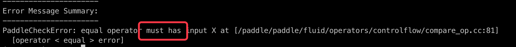 问题描述: 应该是关于fluid.layers.equal的一个报错,如下图。应该是must have