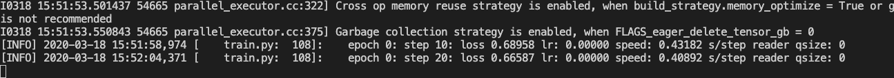 log.info("epoch %s: step %s: loss %.5f lr: %.5f speed: %.5f s/step reader qsize: %s" %