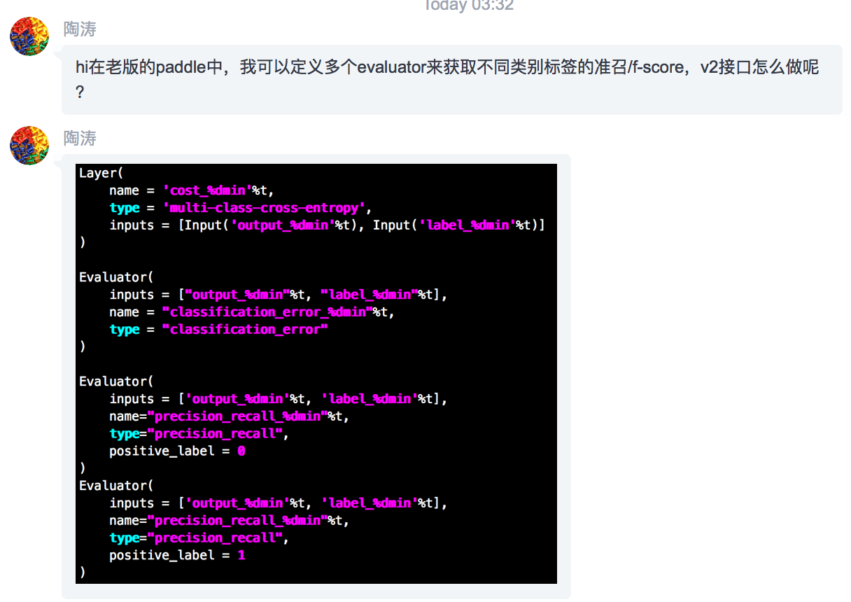This is a question in Paddle user Hi Group. User mentioned in the v1 API, he can create multiple evaluators to calculate score. And he is wondering how can this be done in v2 API.