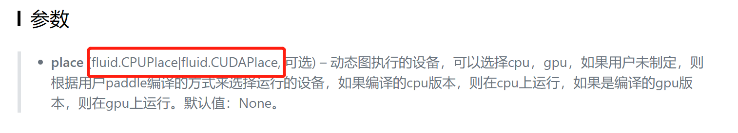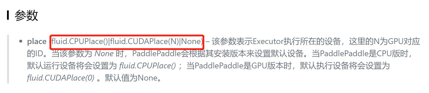 参数的说明如下图所示:没有说清楚fluid.CPUPlace