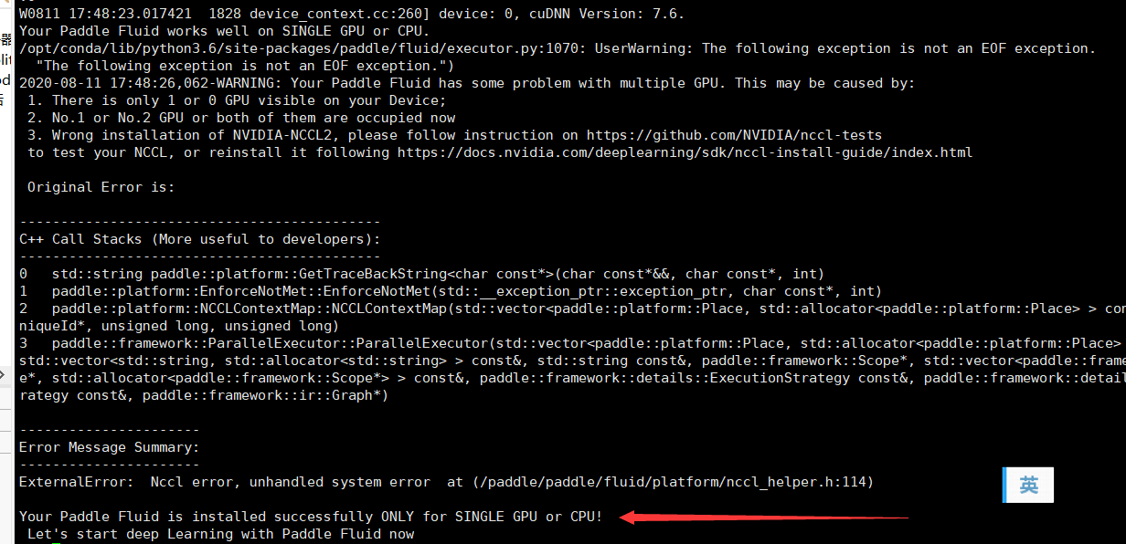 问题描述:按照步骤安装PP,其余没问题,python测试的时候提示只能使用一块卡。NCCL也重装了一遍,还是存在问题。