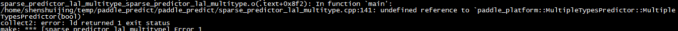 线下自己写了一个sparse的predictor, 用SparseNonValuePredictor, 则以下两个依赖编译链接都是可以的 并且预测结果一致 CONFIGS('idl/paddle/sdk@sdk_1-0-3-0_PD_BL', Libraries('./lib/libpaddle_predictor_noavx.a')) 或者 CONFIGS('idl/paddle/sdk@sdk_1-0-4-765_PD_BL', Libraries('./lib/libpaddle_predictor_noavx.a'))