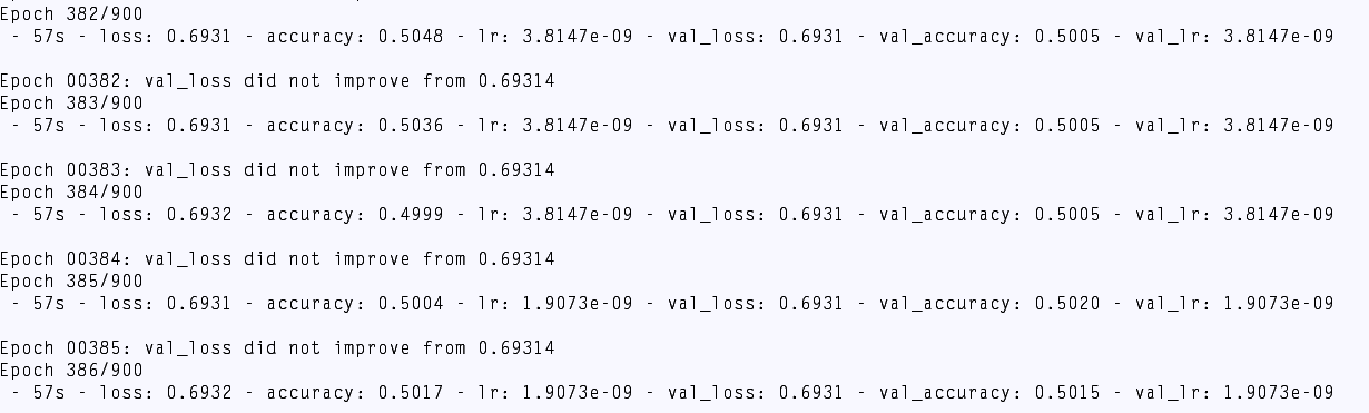 如题,改造了ReST-Net模型。在训练WOW隐写算法在0.4bpp嵌入率的时候检测效果有80%左右,还是挺不错的。但是在训练WOW隐写算法在0.2bpp嵌入率的时候的时候,最后的全连接层输出的预测值都是比较小的值,在0附近(下面有图),经过sigmoid函数后的值都在0.5左右。导致acc一直在0.5上下,loss在0.69左右,试过很多网上的方法,都不行。训练集里正反例各一半,训练时,随机读取。lr从0.001开始下降。