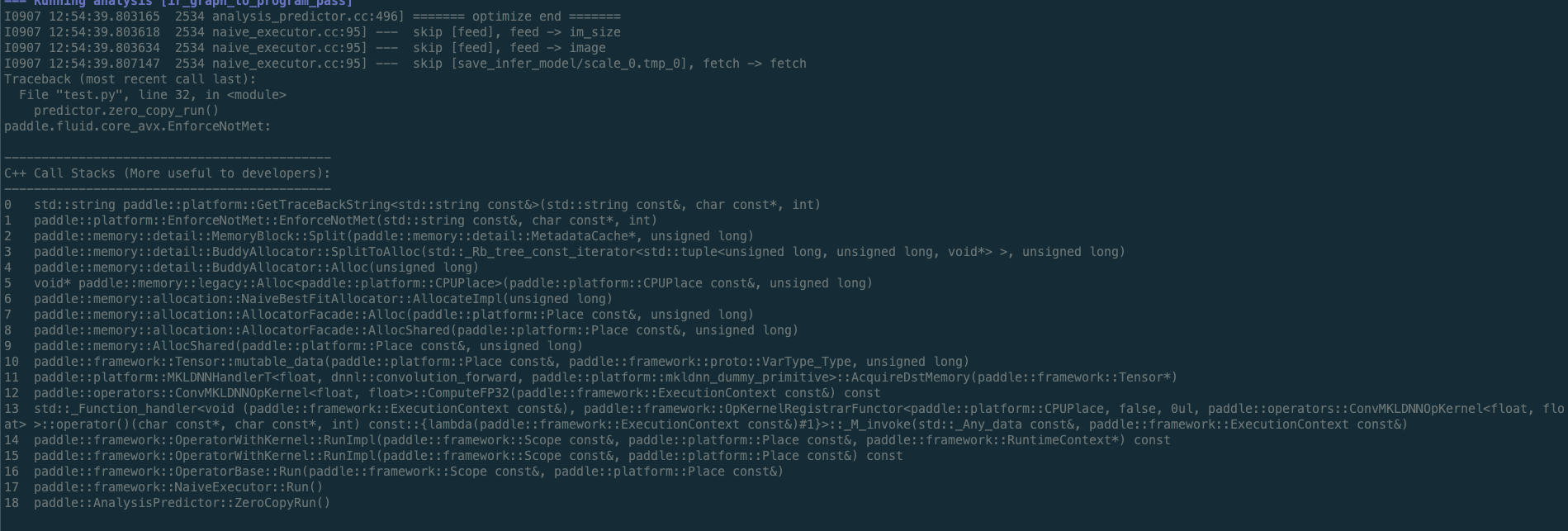 Thank you for contributing to PaddlePaddle. Before submitting the issue, you could search issue in the github in case that th If there is no solution,please make sure that this is an inference issue including the following details : System information -PaddlePaddle version: paddle 1.8.4 -CPU: Use MKLDNN -GPU: - -OS Platform: Ubuntu 16.04.6 LTS/Windows -Python version: Python 3.7 -Cmake orders -C++version.txt -API information