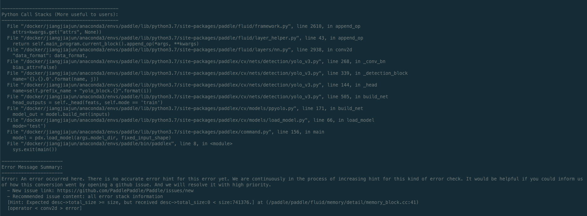 Conv2d(MKLDNN) error: Expected desc->total_size >= size, but received desc->total_size:0 < size:741376
