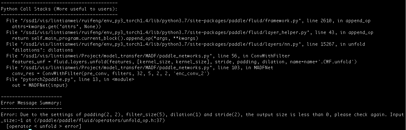 第二次调用unfold时,对应输入的shape为(-1, 16, -1, -1)报错。