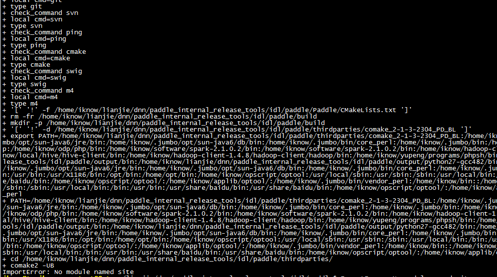 下载内部一键编译版本,运行: sh build.sh cpu nonrdma 最后报错ImportError: No module named site 很快退出安装。