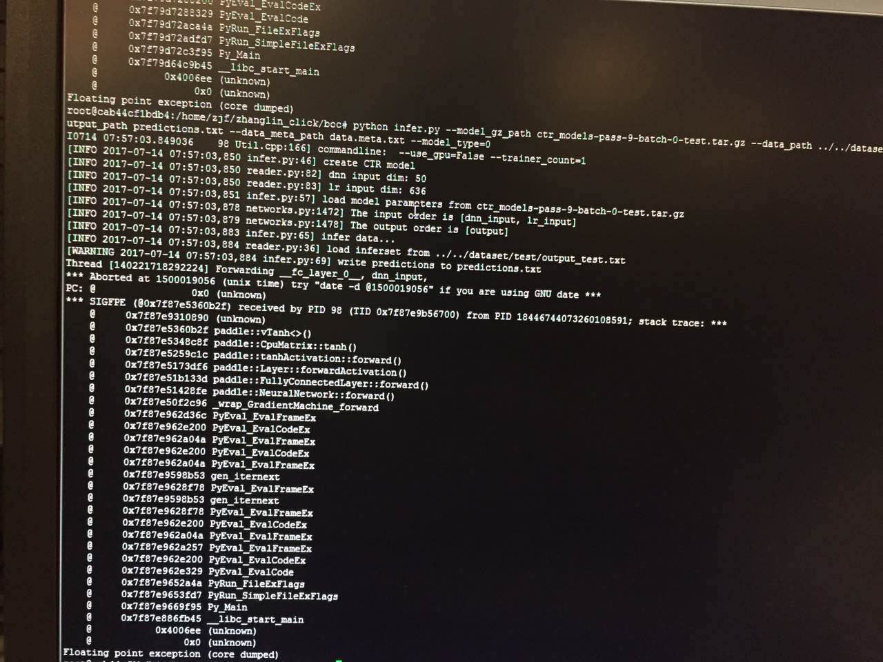版本:paddle:0.10.0rc3-noavx 代码:https://github.com/Superjom/models-1/tree/ctr2/ctr 针对自己的input数据做了一些修改 问题:在mac上安装这个版本,跑代码,能正常出结果,将代码和数据迁移到内网机器上(无avx),报下面错误。 暂时也不法确定是机器问题还是数据问题。 代码在ctr.zip,执行命令可以看run.sh