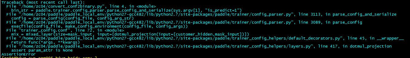 我没有设置过param_attr, 怎么回assert失败, 另外我强制在dotmul_projection中输入param_attr=None, 也是报这个错误